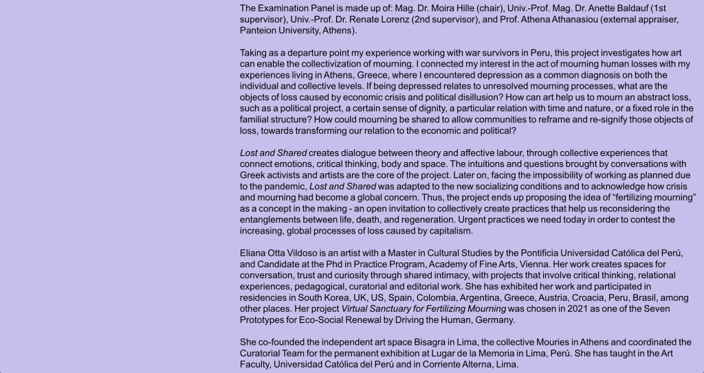 Defense of my PhD thesis Lost and Shared at the Academy of Fine Arts in Vienna! Relacionado Publicado el enero 20, 2023