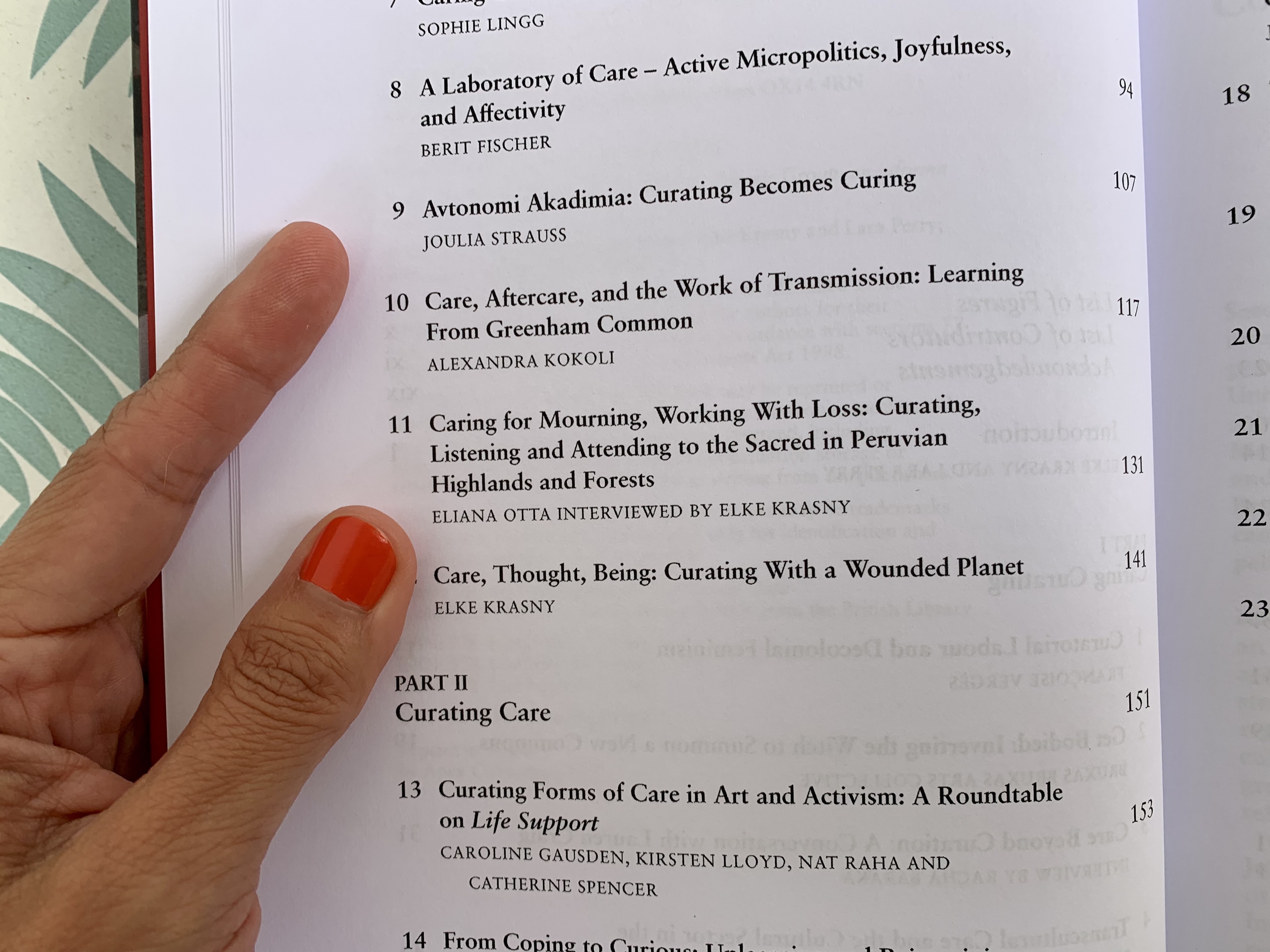 El libro Curating with Care, editado por Elke Krasny y Lara Perry y publicado recientemente por Routledge, incluye una entrevista que me hizo Elke, titulada «Cuidar el duelo, trabajar con la pérdida, curar, escuchar y atender a lo sagrado en la sierra y la selva peruanas». También incluye muchos textos apasionantes de gente como Joulia Strauss y Hansel Sato. ❤ ❤ ❤