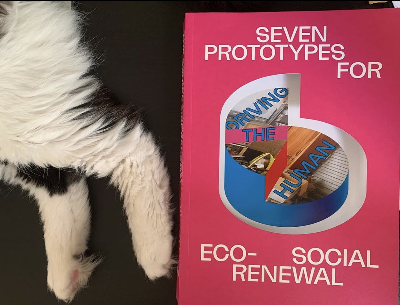 I am very happy to finally have the Seven Prototypes for Eco-Social Renewal book in my hands (and Tina’s legs)