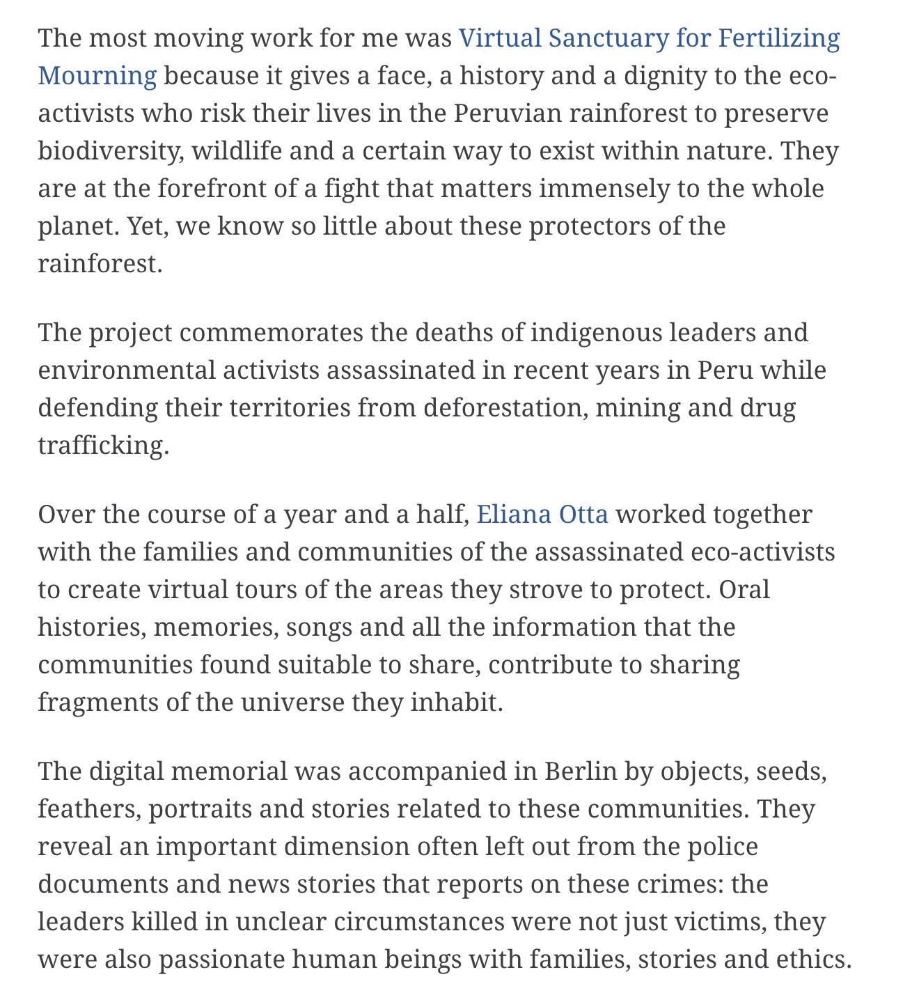 A bit late I found out some reviews on the installation of Virtual Sanctuary for Fertilizing Mourning last year at Silent Green, in the context of the Seven Prototypes for Eco-Social Renewal organized by Driving the Human. These first captures are from the article What Drives Us Together by India Block for Disegno Journal.