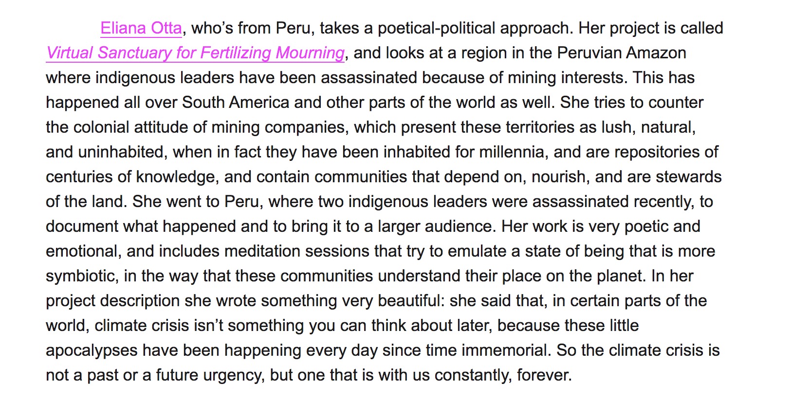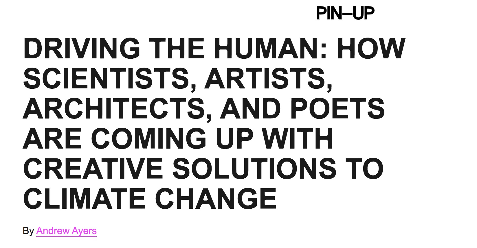 And lastly, an interview to Vera Saccheti made by Andrew Meyers for Pin-Up Magazine, «DRIVING THE HUMAN: HOW SCIENTISTS, ARTISTS, ARCHITECTS, AND POETS ARE COMING UP WITH CREATIVE SOLUTIONS TO CLIMATE CHANGE»