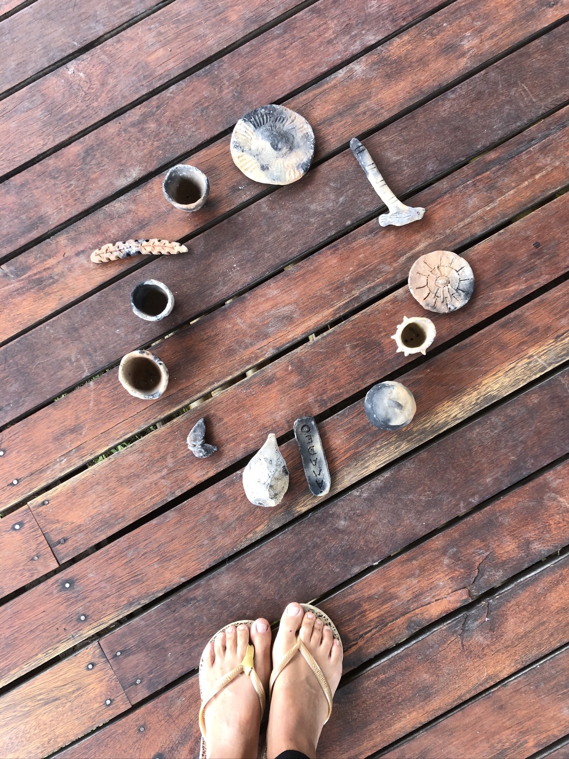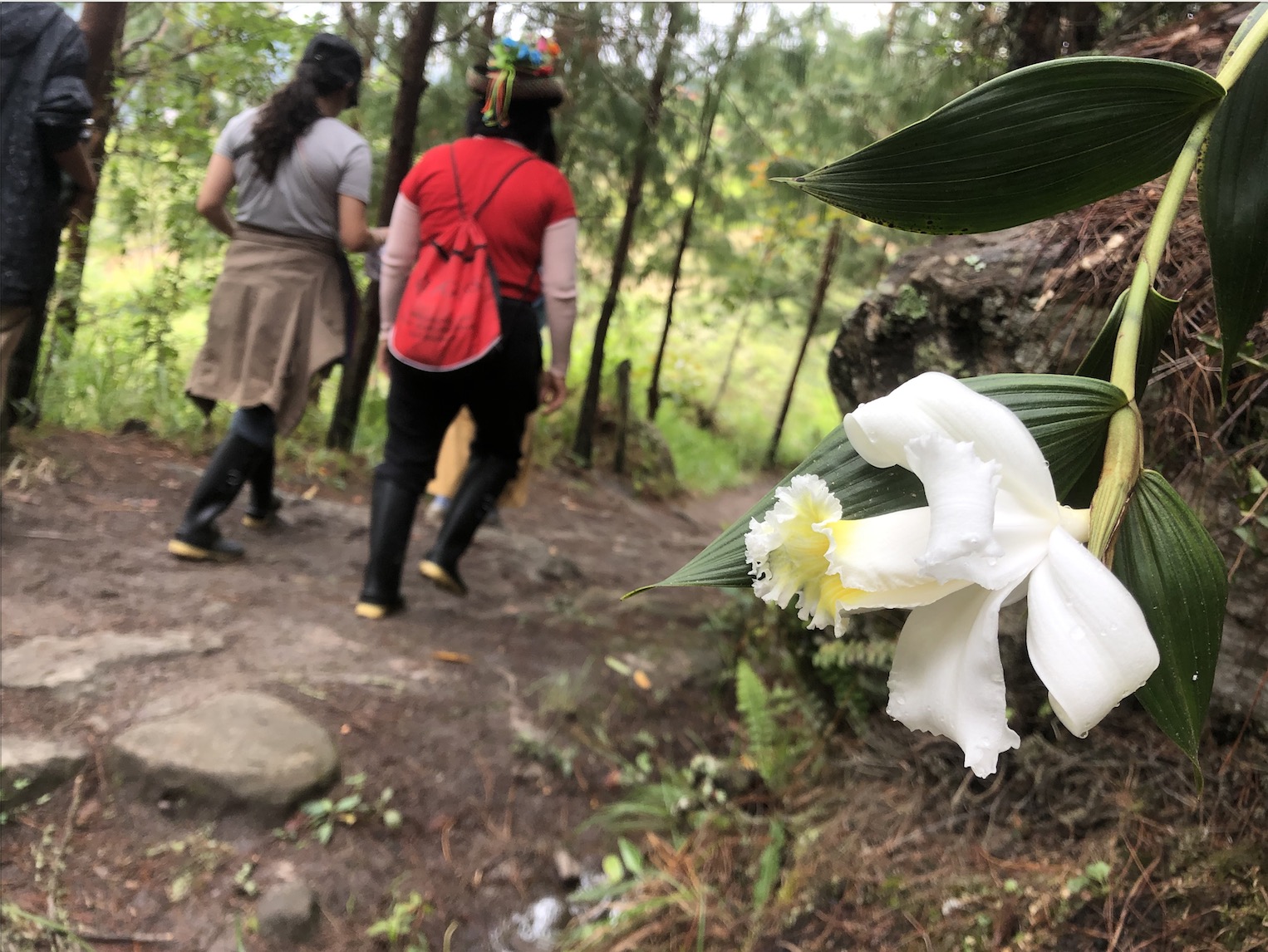 Comunidad de Médiums fue un taller retiro de una semana que hice en enero de 2021 en el bello paraíso que es GoctaLab en Cocachimba, Amazonas, Perú. Este combinó experiencias corporales, sensoriales y afectivas, traducción de saberes y mundos por medio de escucha profunda, caminatas, lectura y conversación, yoga, ensayos de rituales y convivialidad para la regeneración de la vida. Nos acompañaron: una inspiradora catarata, J.M. Arguedas, Gloria Anzaldúa, Stefano Varese, Silvia Federici, entre otrxs, alimentos cosechados con amor y otros seres mágicos que descubrimos colectivamente. Cada día actividades propuestas por mi eran seguidas por otras propuestas por las participantes, intercambiando una rica variedad de saberes y experiencias.
