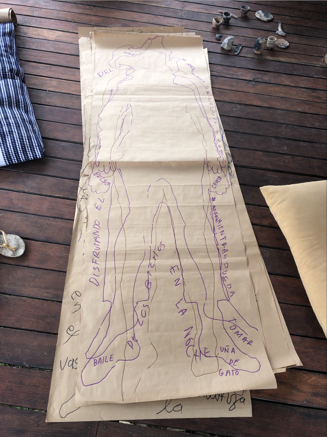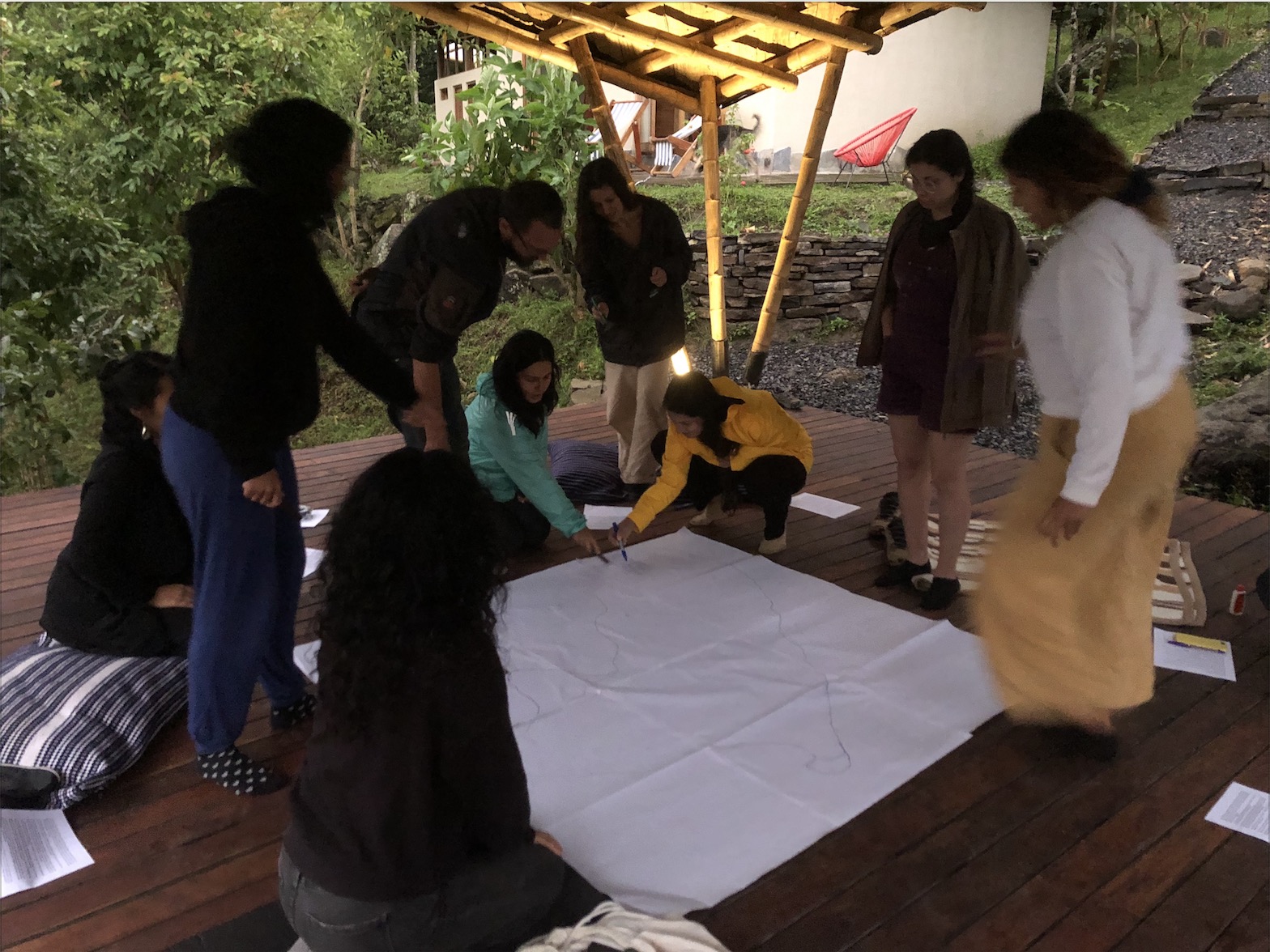 Community of Médiums was a workshop retreat I made in January, 2021 in the beautiful paradise of GoctaLab in Cocachimba, Amazonas, Peru. It merged corporeal, sensorial and affective experiences, knowledges and worlds’ translations through deep listening, walks, readings and discussions, yoga, rehearsals of rituals and conviviality for life’s regeneration. We were joined by an inspiring waterfall, José María Arguedas, Gloria Anzaldúa, Stefano Varese, Silvia Federici, among others, food harvest with love and other magic beings we discovered collectively. Each day the activities I proposed were combined by those proposed by the participants, exchanging a rich variety of knowledges and experiences.