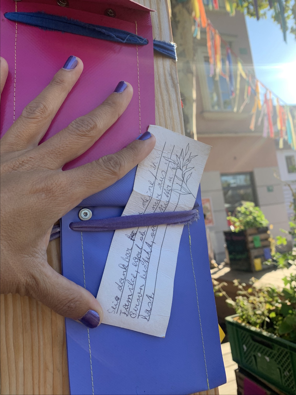 Then we continued talking, laughing, other magic coincidences and moments happened that night, including martial arts demonstrations and spontaneous dances with new friends of the neighborhood. I left the next day thinking about the origins of the project, when we met the women of Frauenservice and we imagined to create a space where women could share their vulnerabilities and strengths, where different cultures could coexist, where we could share fruit salad among growing plants. A place to care about each other under the sun.