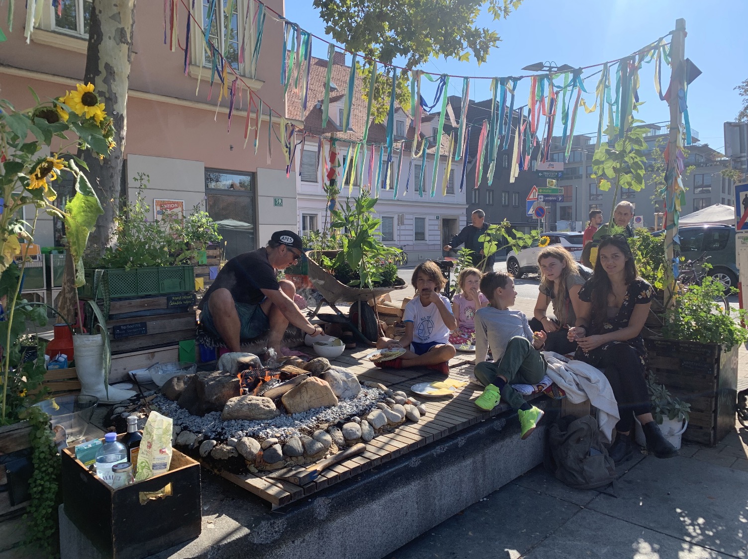 We had been working already for more than a week. The weather had been generous, sparing us the rain with a shiny sun almost every day while we received plants from the neighbors and learned from the visiting gardeners. Each day someone would give different advices and tips, sometimes contradicting each other, but the general feeling was of enthusiasm and gratitude for having a new and welcoming public space to enjoy. Working at Lendplatz, I could see that most of the faces of the strollers showed expressions of curiosity which very quickly turned into kind smiles, when it was understood that what was being created there was a garden. But the closer we were to the final result, the more I felt certain discouragement due to not having enough time to experience completely the project as I imagined it, organizing activities and encounters on site to reflect about how we care about life, beings around us and ourselves.