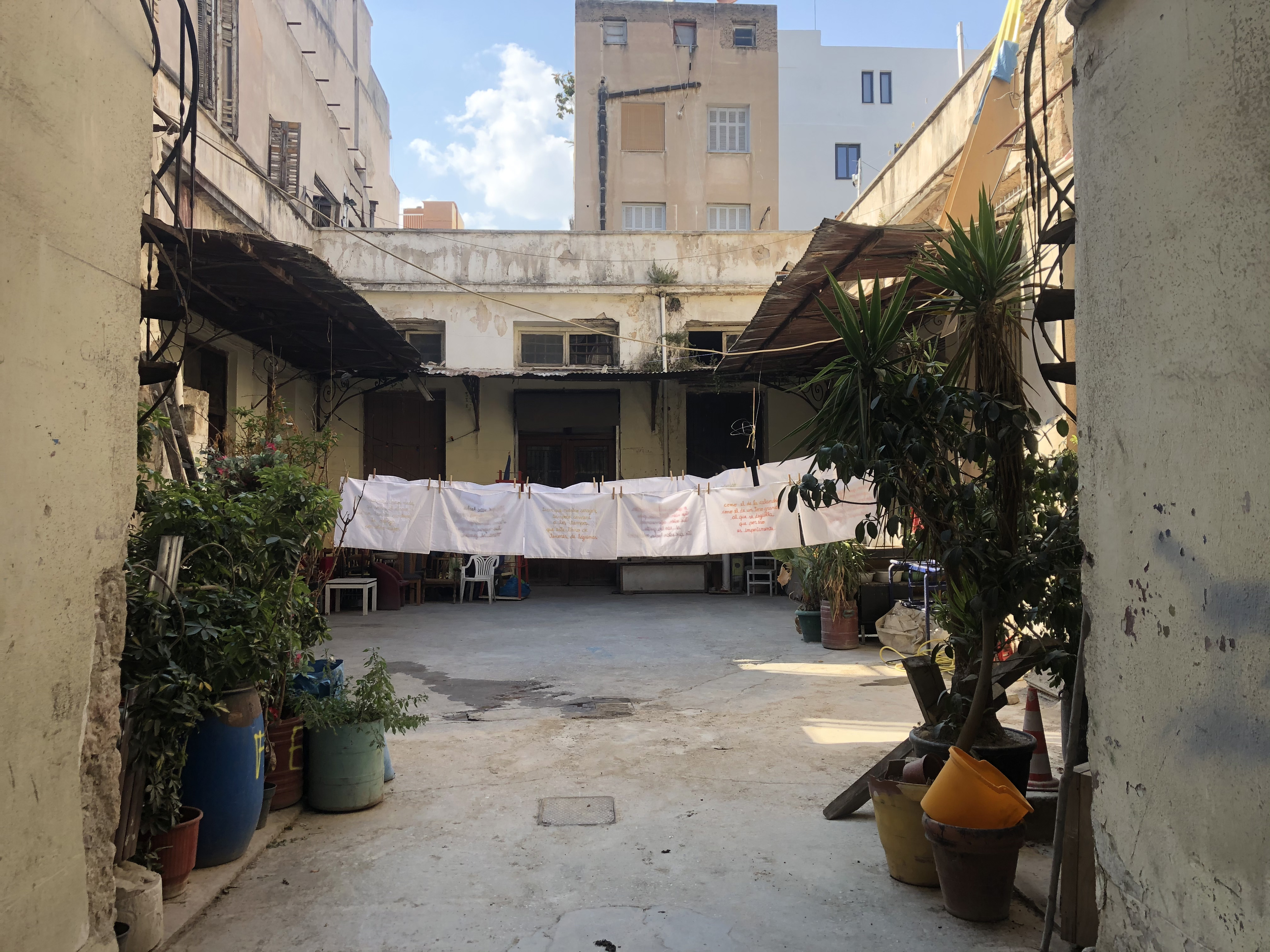 While trying to learn the poem by heart for the performance, I decided to embroider it on pillow cases, considering that the manual labor would help me to embrace it more deeply. The task, which turned out to be titanic, became one of the activities that supported my lonely routine at the beginning of the Covid-19 pandemic. When I finished, I installed the work at the exhibition Manual Meditations, at PS – Athens.