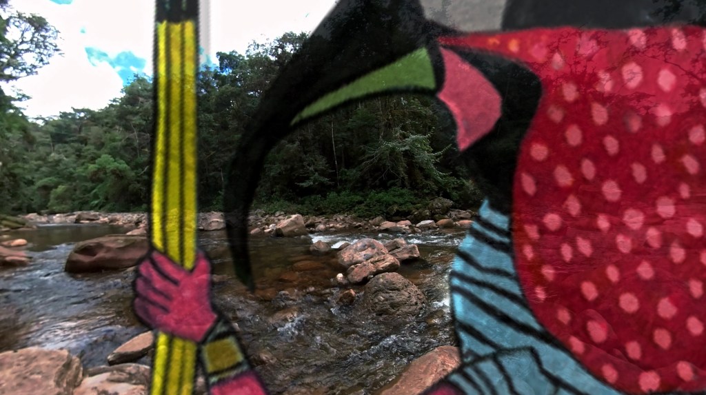 While my artistic work encourages critical perspectives on climate change and the current crisis the planet faces, I wanted to seize this opportunity to embrace a process of work without a predetermined message to convey. I allowed its content to be guided by the overwhelming celebration of life provided by access to the Amazonian rainforest and by the contributions of sound and vocal artists whom I invited to be part of the process. The content was also be enriched by animations made out of drawings by the Peruvian artists Enrique Casanto and Lastenia Canayo, from the Asháninka and Shipibo indigenous communities respectively. The animations were made by the Peruvian artists Diego Vizcarra and Martín Aramburu. The vocal contributions were created by: Sozia Holubowska (Austria), Imayna Caceres with Yeni Ccorahua, Susana Ojeda and Marcela Torres from Feministiches* Bloco Decolonial (Austria), Yorgia Karidi (Greece), Edith Ramos with Tilsa Otta (Peru), Coral Rojo (Chile).