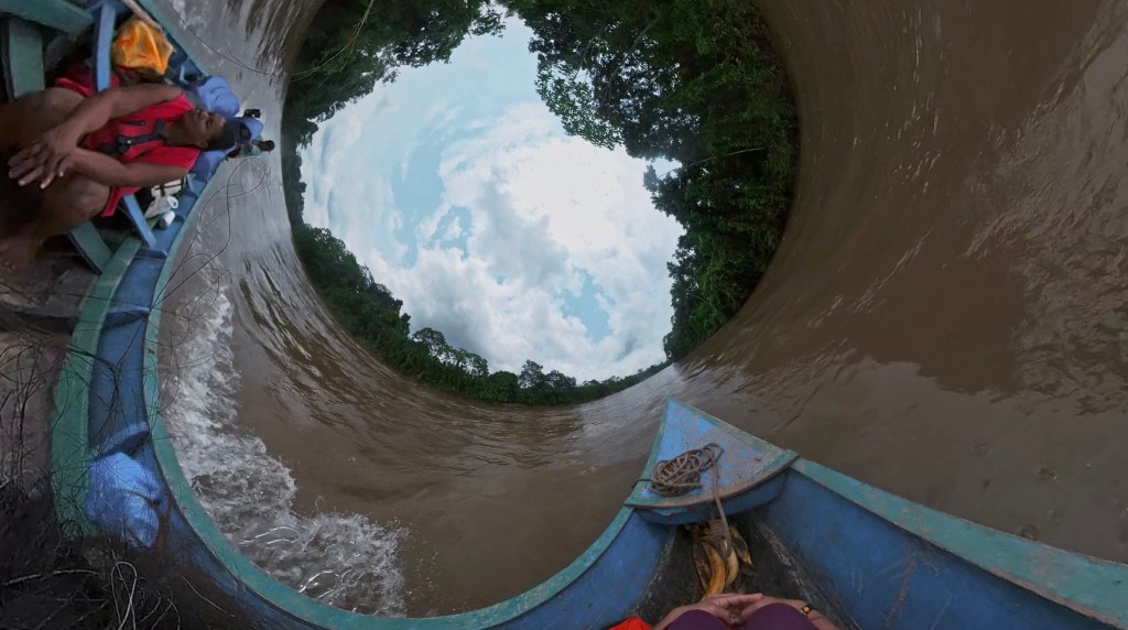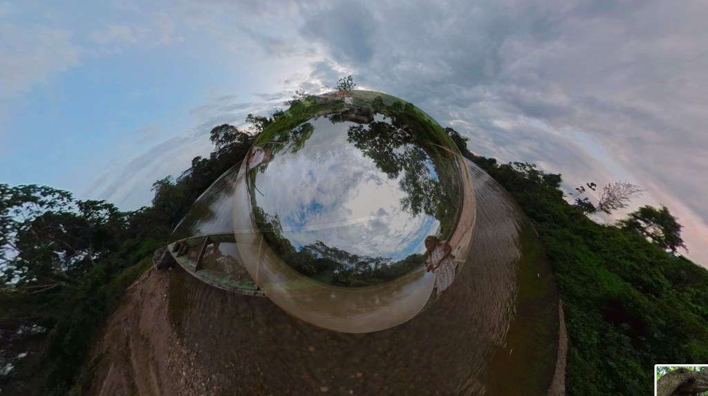 Asking Trees, Birds, and Ghosts about Future Images and Sound is a poetic exploration of 360-degree video material recorded in the Peruvian Amazon, in Indigenous communities where leaders and environmental defenders were recently murdered. By delving into the possibilities of editing 360-degree video, combining animation techniques and collaborating with sound artists and poets, I created an experimental film. The original footage has been now taken in unexpected audiovisual directions, aiming to honor the rich complexity of the entangled sentient networks it depicts and to create a collective homage to life’s regenerative capacities and the beings, both human and non-human, that sustain them.