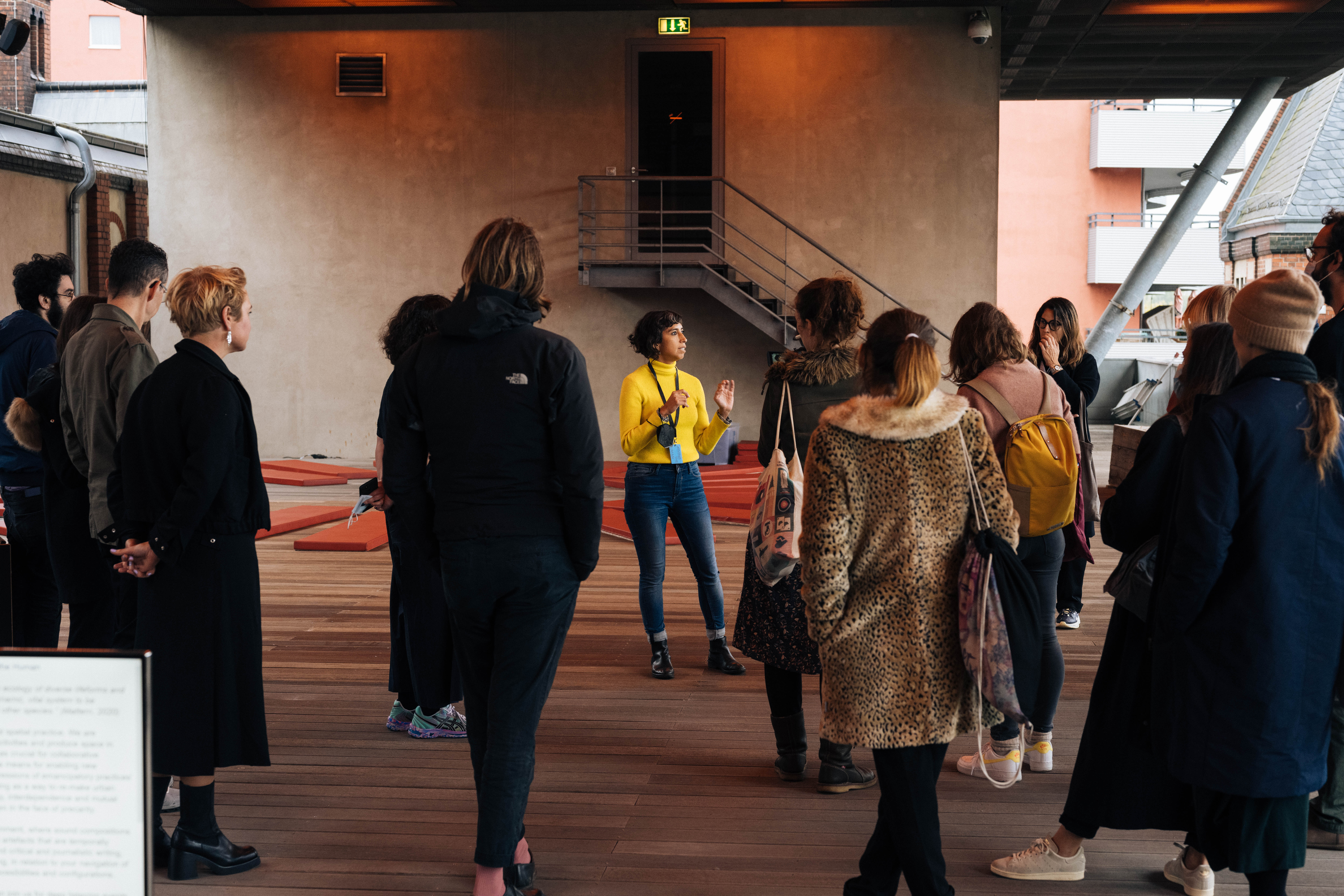 Convidamos ao foco consciente no que sentimos no momento, usando todos os sentidos. Que imagens entram no campo de consciência a partir da visão periférica? Que sons se percebem à distância? Que aromas invadem o espaço? Como reage a pele à variação de temperatura no percurso? Como navegamos entre luz e sombra? Com que corpos estabelecemos relação na visita? Como podemos transformar a nossa relação com o mundo? Concentre-se no som das luzes, no ruído ambiente da sala ao lado, na sensação da sua língua a tocar o céu da boca, na tensão nos seus ombros ou mandíbula, nos lugares frios e quentes no seu corpo, no zumbido do trânsito distante, na imagem desfocada do seu próprio corpo quando olha em frente. Use a tecnologia que tem consigo para fazer um registo expandido dos sentidos, em formato de imagem ou som.