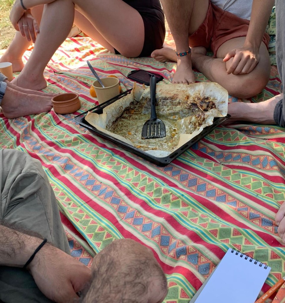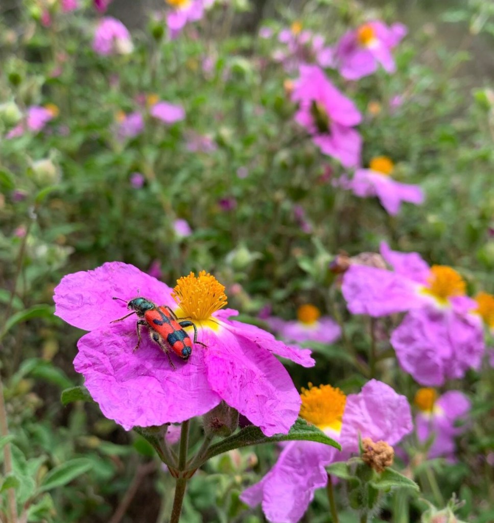 Durante estas dos semanas, aprendimos un poco sobre las plantas y los animales que viven allí y sobre las iniciativas que luchan contra el proyecto extractivista. Nos enamoramos de las aves, de nosotros mismos, de los insectos y del ritmo lento de un lugar donde caminar es la forma preferida de desplazarse. Las movilizaciones afectivas iniciadas por Carr conmovieron profundamente nuestros sentidos y cuerpos, creando intensas conexiones entre los participantes y nos invitaron a cultivar esas sutiles pero poderosas conexiones que sentimos con nuestros anfitriones más que humanos. Empezando por la tierra, que ahora nos preguntamos cómo ayudar a proteger de una extinción amenazante que se vende como «desarrollo». Quienes buscan lucrarse con las montañas de Amaní llaman a sus oponentes «atrasados», «analfabetos», exactamente como las élites limeñas llaman a las poblaciones indígenas del Perú cuando luchan. Contaminados, los vientos que se vuelven mortales no conocen fronteras. El guion es el mismo en todas partes, así que más vale que aprendamos unos de otros. ¡Gracias a Carr y Keramos, gorriones, arañas y espárragos silvestres! ¡Ya los extrañamos a todos! #SalvemosAmani #sos_chios